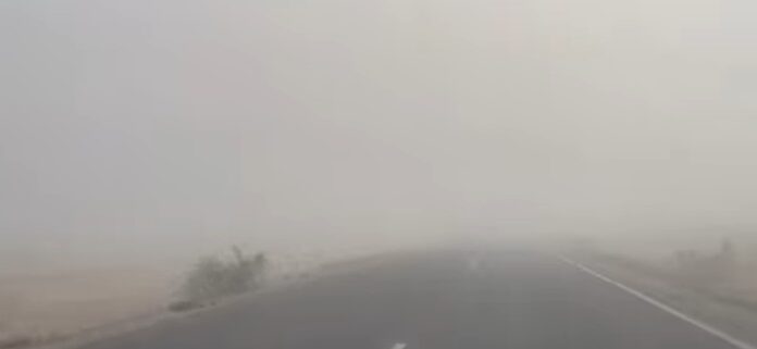 La Coordinación Estatal de Protección Civil (CEPC) informa sobre baja visibilidad por tolvaneras en el kilómetro 106 de la carretera Chihuahua–Ciudad Juárez, en el tramo Chihuahua–Sueco.