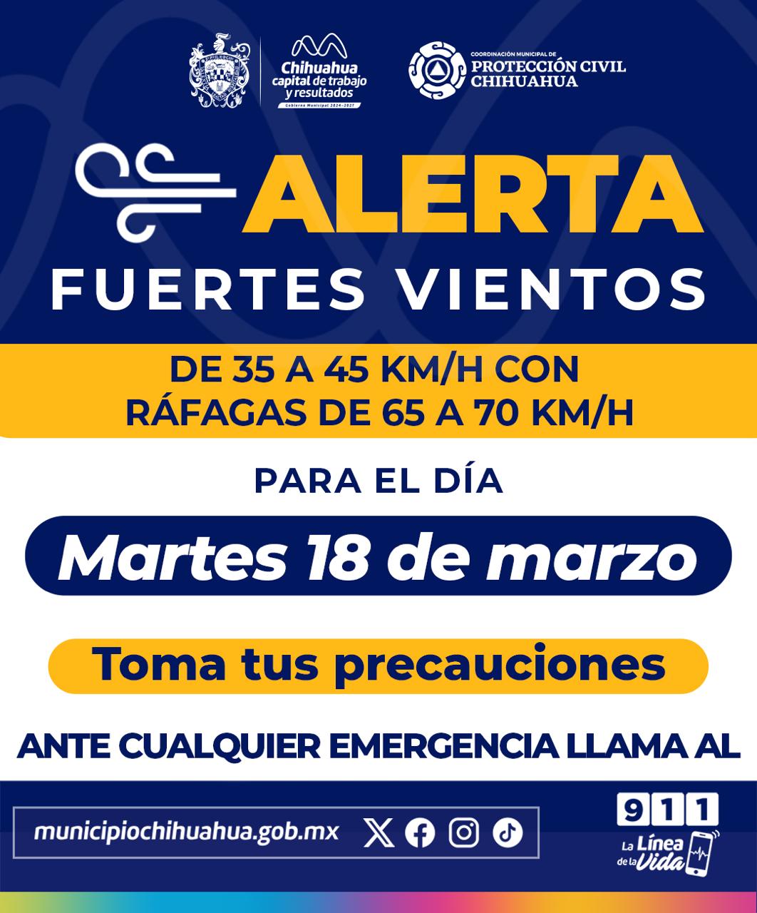 La Coordinación de Protección Civil Municipal, informa que para esta semana se pronostican temperaturas máximas de 30°C con mínimas de 6°C, así como presencia de rachas de viento de hasta 65 kilómetros por hora, especialmente el martes.