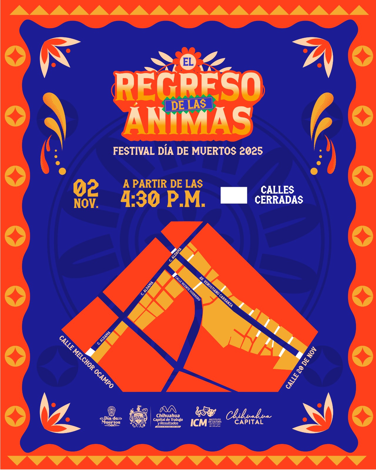Con motivo del desfile por el Día de Muertos y el festival «El Regreso de las Animas» en el Centro Histórico de la Capital, el Gobierno Municipal a través del Instituto Municipal de Cultura informa sobre los cierres viales que se realizarán este 2 de noviembre, para que conductores tomen precauciones y planifiquen sus rutas.