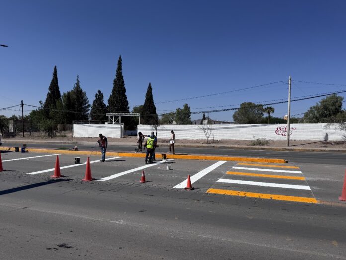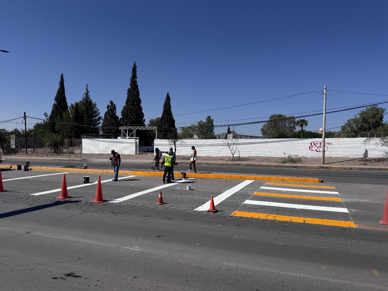 La Secretaría de Seguridad Pública del Estado (SSPE), a través de Ingeniería Vial, continúa con los trabajos de aplicación de pintura vial en Chihuahua, donde en lo que va del año se aplicarán un total de 5,363 metros cuadrados en pasos peatonales y banquetes, con el objetivo de reforzar la seguridad de los peatones y conductores.