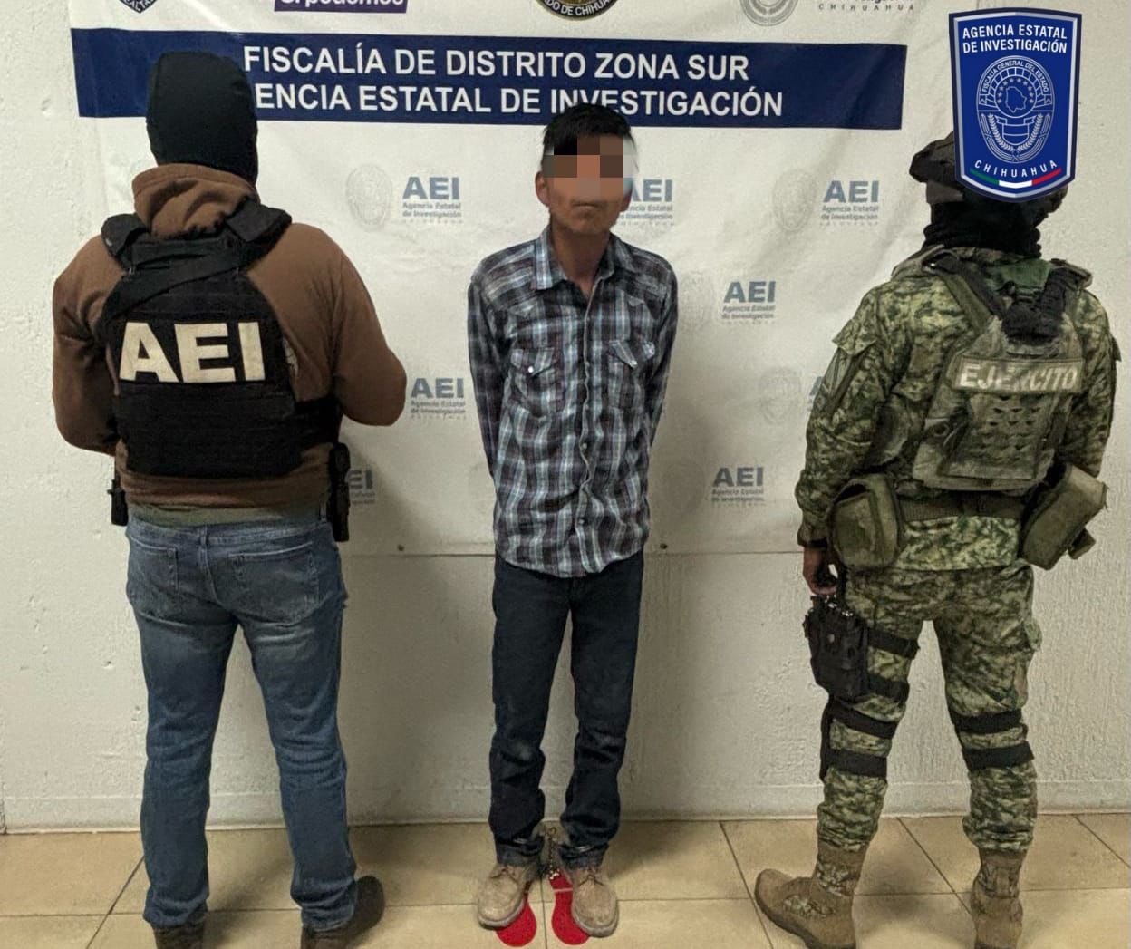 Elementos de la Agencia Estatal de Investigación de la Fiscalía de Distrito Zona Sur, en coordinación con la Secretaría de la Defensa Nacional, detuvieron en la ciudad de Chihuahua, a Héctor C. M ., quien era buscado por los delitos de desaparición cometida por particulares y trata de personas, ambos con penalidad agravada.