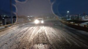 Los percances viales se derivaron debido al congelamiento del pavimento, sobre todo en la gasa del circuito universitario, justo arriba del puente frente al estadio universitario.