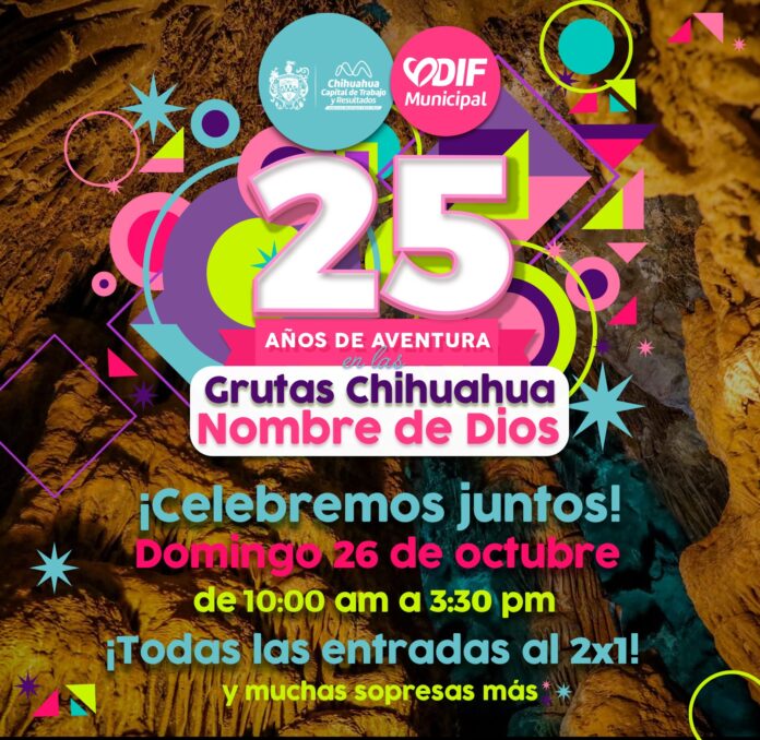 El Gobierno Municipal, a través del DIF, invita a la ciudadanía en general a celebrar el 25° aniversario de las Grutas Nombre de Dios, este próximo domingo 26 de octubre, en un evento familiar que tendrá lugar en este emblemático espacio de 10:00 am a 4:00 pm.