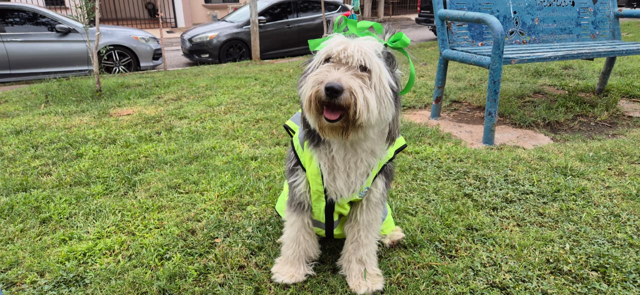 Bartola, es una perrita pastor inglés de tres años de edad, quien trabaja diariamente supervisando la limpieza de los parques de Chihuahua Capital, junto a los colaboradores de la Dirección de Mantenimiento Urbano del Gobierno Municipal.