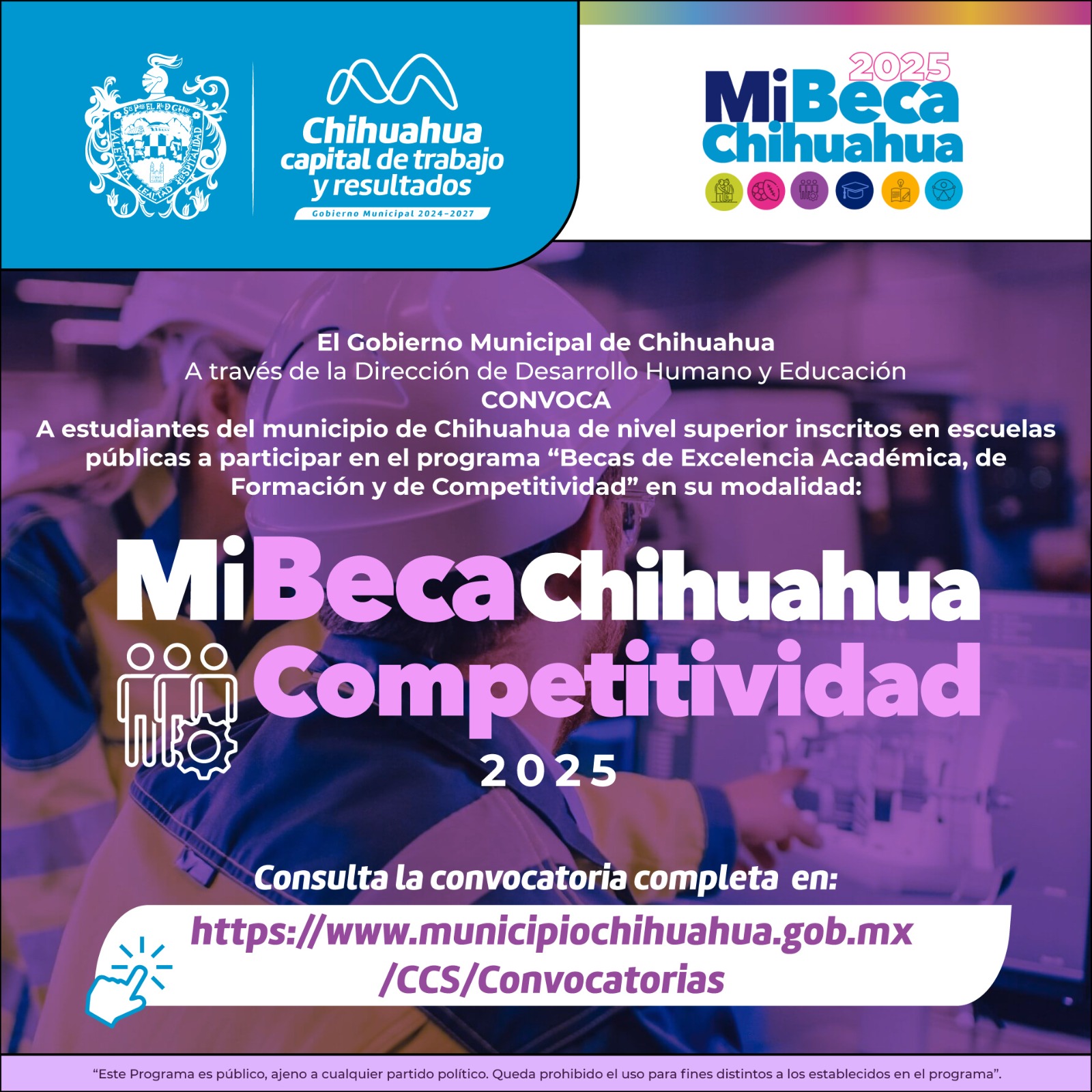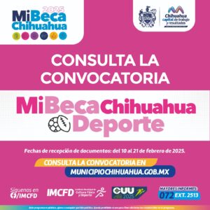 El Gobierno Municipal de Chihuahua a través de la Dirección de Desarrollo Humano y Educación en conjunto con el Instituto de Cultura Física y Deporte, invita a la ciudadanía a conocer y ser parte de los programas “Mi Beca Chihuahua” en sus modalidades de Deporte y Competitividad.