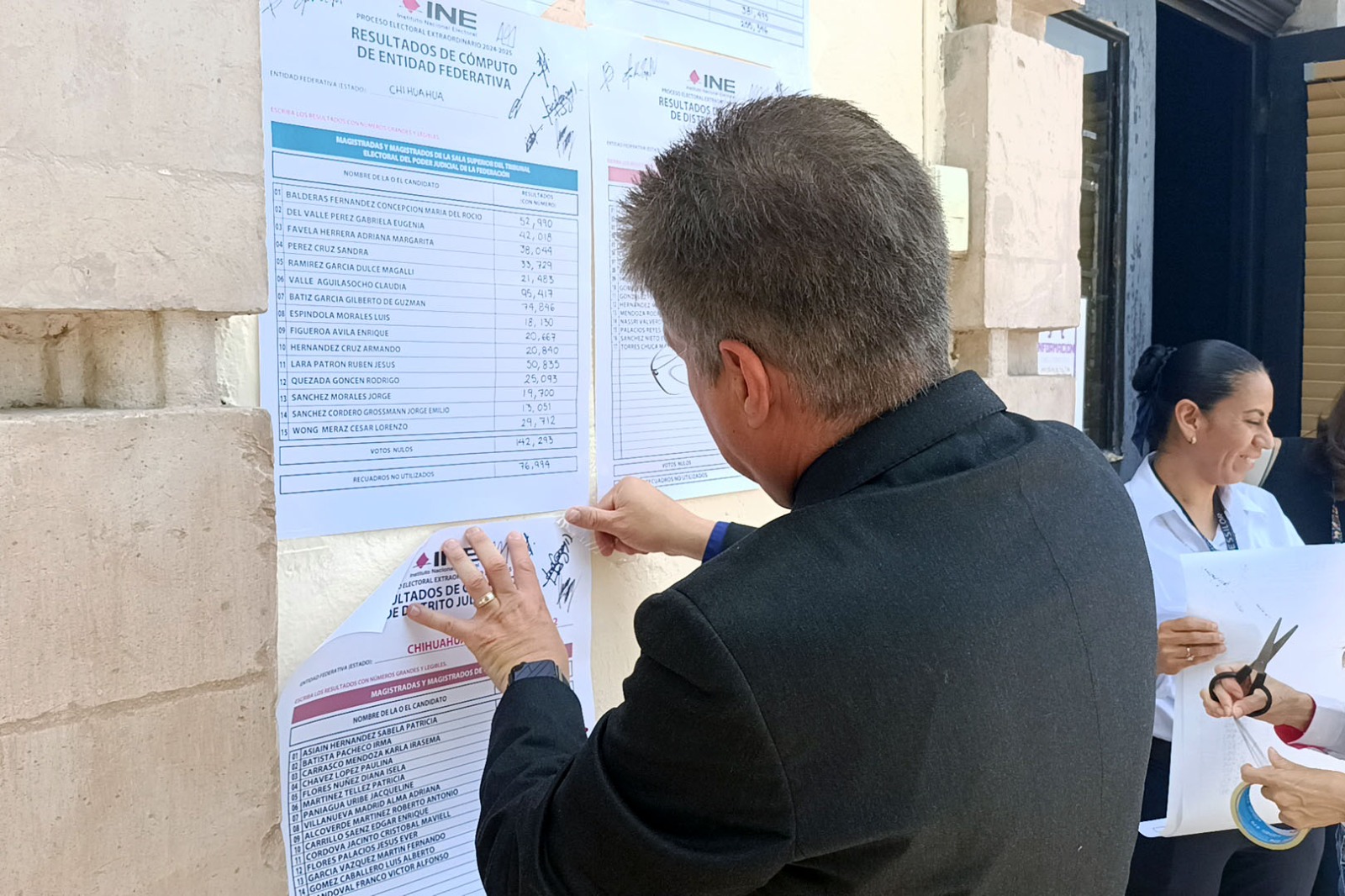 También expuso la votación obtenida por las candidatas y candidatos que se postularon para ocupar cargos de Magistraturas de Circuito y Personas Juzgadoras de Distrito en los dos Distritos Electorales Judiciales en que se dividió al estado de Chihuahua.