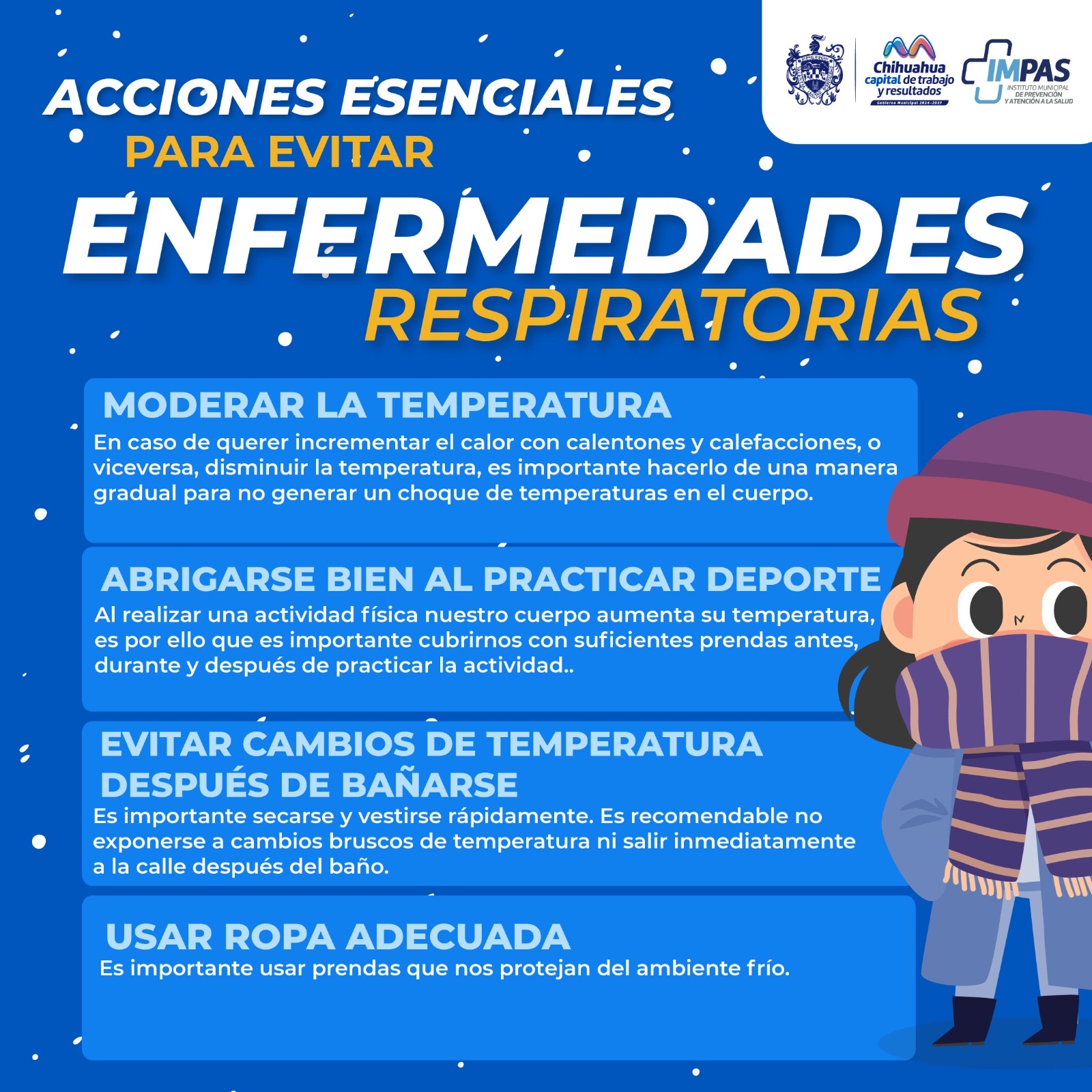 Ante los cambios de temperatura presentes en la ciudad, el Gobierno Municipal, a través del Instituto Municipal de Prevención y Atención a la Salud (IMPAS), emite a la ciudadanía recomendaciones para prevenir enfermedades respiratorias en esta temporada otoñal.