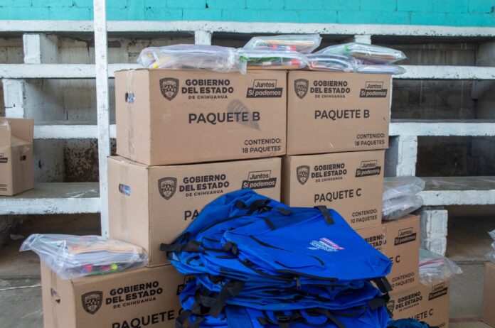 En total se distribuyeron tenis, mochilas y paquetes de útiles escolares para 209 estudiantes de La Cruz y 508 de San Francisco de Conchos, a fin de que el alumnado cuente con mayores herramientas para el proceso de enseñanza-aprendizaje.