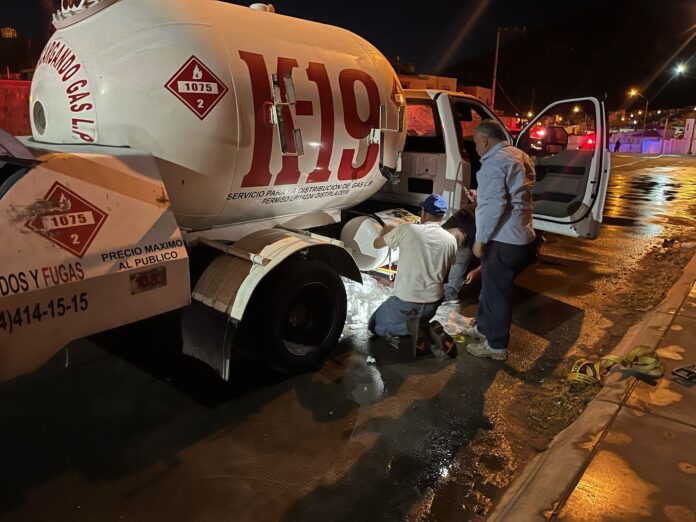 Luego de recibir un llamado de emergencias al 9-1-1, el Gobierno Municipal de Chihuahua informa que se atendió de manera oportuna y satisfactoria una fuga de gas registrada en una pipa de la empresa K-19, ubicada al norte de la ciudad. La fuga se originó en una de las mangueras de llenado del tanque.