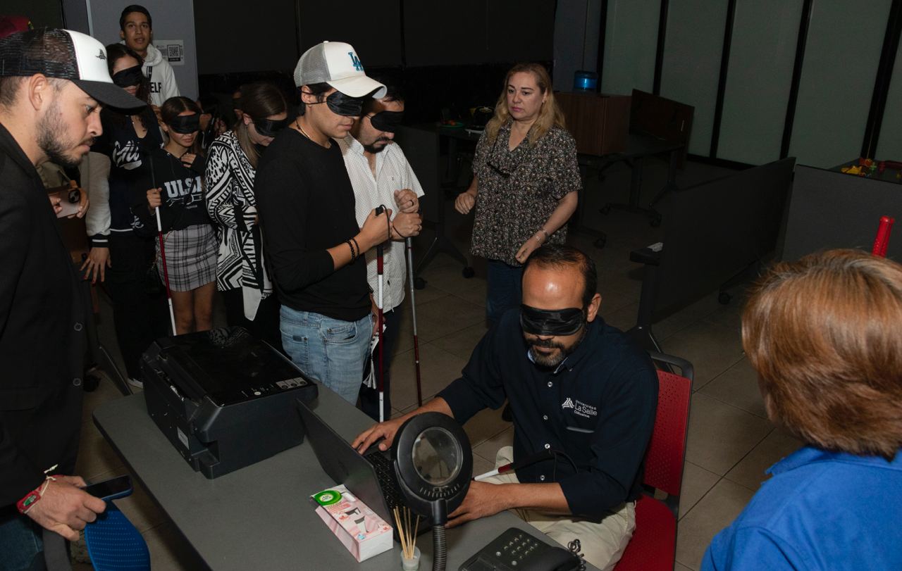 El Túnel Sensorial es un espacio adaptado para realizar un recorrido en completa oscuridad, donde las y los participantes enfrentan situaciones cotidianas —como estar en una oficina o una cocina— sin utilizar la vista. Durante la experiencia, son acompañados por personas con discapacidad visual, quienes comparten de primera mano sus vivencias, estrategias de adaptación y el uso de herramientas que les permiten desenvolverse con autonomía.