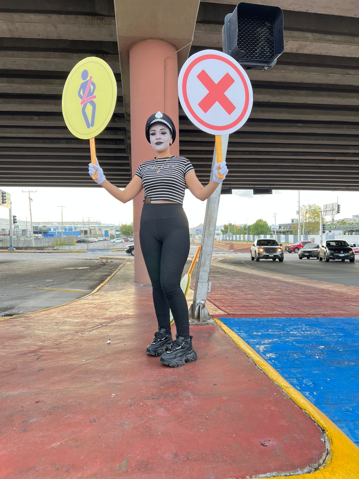 Además, se contó con actividades informativas dinámicas, con la presencia de personas caracterizadas como mimos, quienes manejan paletas gráficas con imágenes de las nuevas disposiciones.