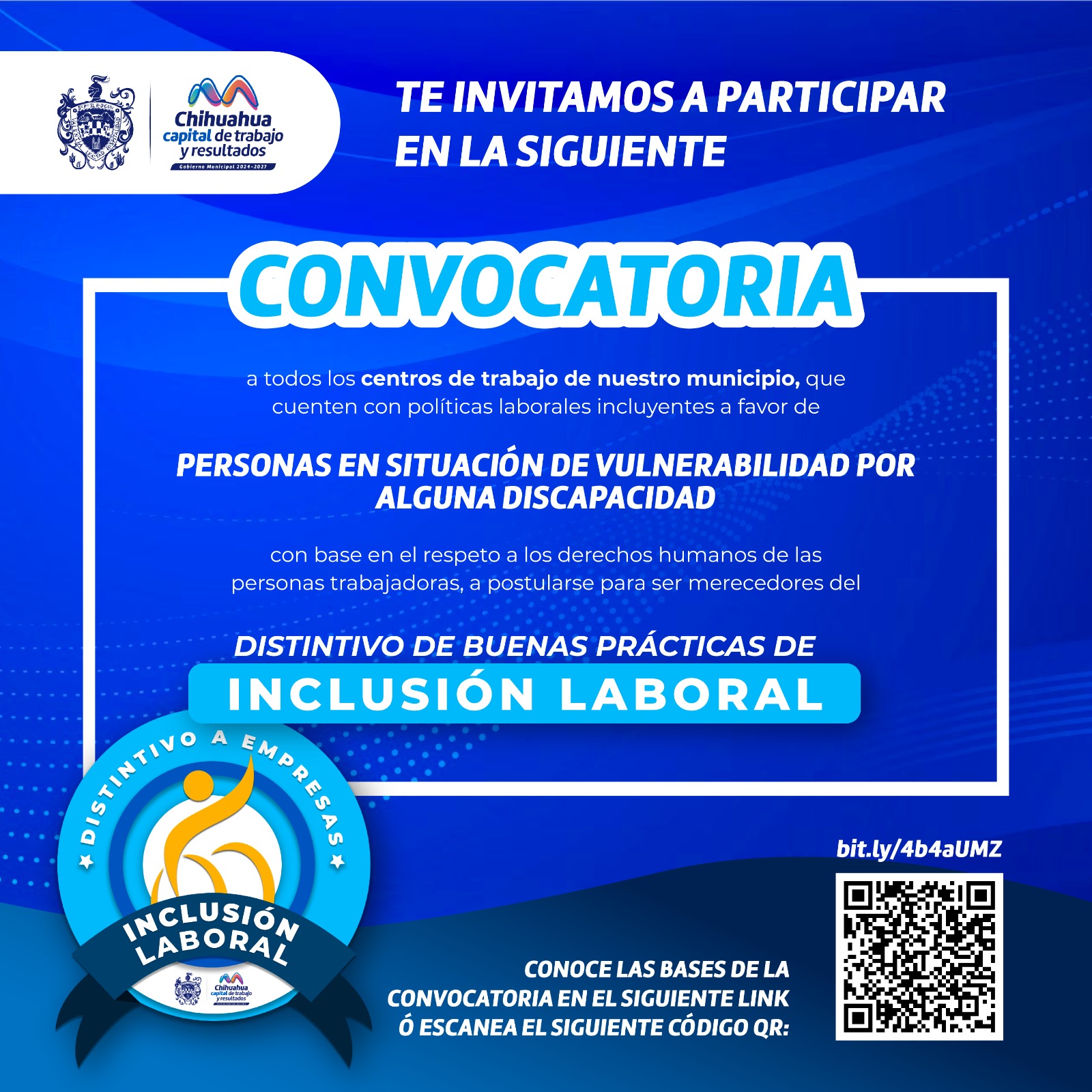 El Gobierno Municipal, invita a empresas que cuenten con políticas que promuevan la inclusión a personas con discapacidad, a participar para obtener el «Distintivo de Buenas Prácticas de Inclusión Laboral”.