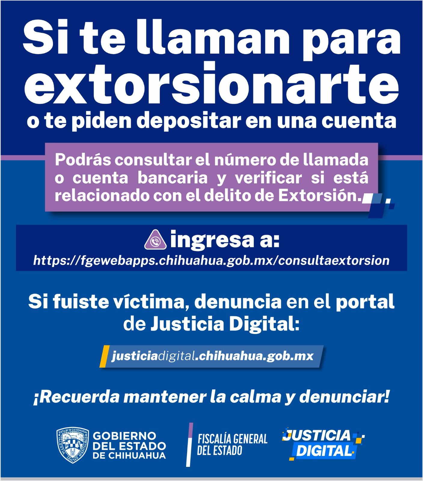 A través del link https://fgewebapps.chihuahua.gob.mx/consultaextorsion se puede realizar la consulta en forma rápida y segura.