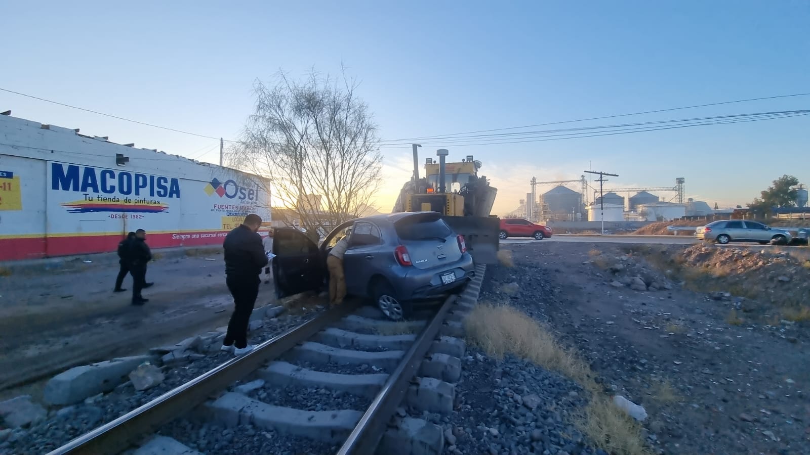 Fue sobre la calle Sicomoro en el sentido de oeste a este, y en su declaración el guiador comentó que no se percató de que venía la máquina de Ferromex denominada «reguladora», la cual pues terminó por impactar el vehículo particular por el costado derecho y lo arrastró cerca de 30 metros hasta que logró detener su marcha.
