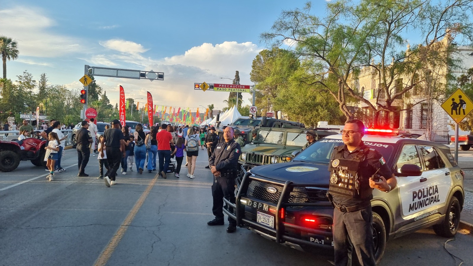 Con el fin de convivir y mostrar la capacidad policial con que cuenta la Dirección de Seguridad Pública Municipal (DSPM), las y los elementos de los diferentes grupos especiales estuvieron mostrando parte del parque vehicular y equipamiento en el “Festival Antojos” que se desarrolla en el Paseo Bolívar.