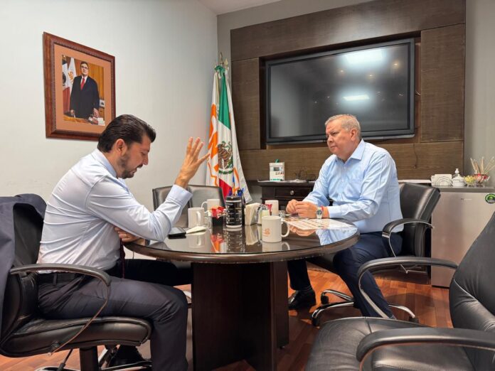 El director general de Pensiones Civiles del Estado (PCE), Heriberto Miranda Pérez, y el secretario general de la Sección 42 del Sindicato Nacional de Trabajadores de la Educación (SNTE), Manuel Quiroz Carbajal, sostuvieron una reunión de trabajo en la que acordaron implementar acciones conjuntas para mejorar los servicios a los derechohabientes del magisterio.