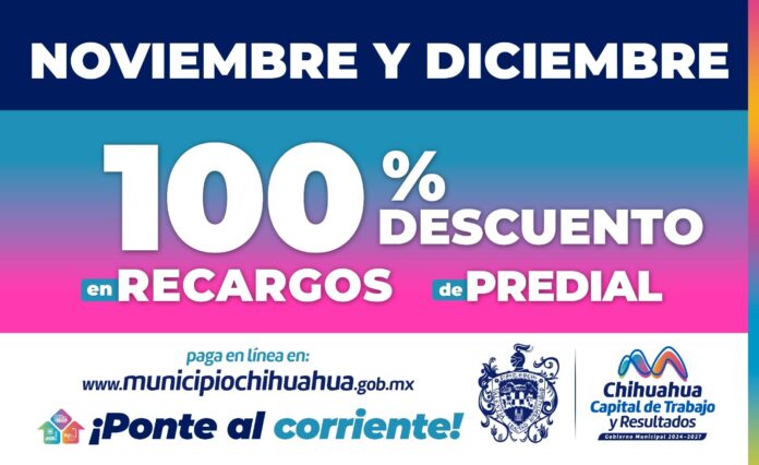 En noviembre y diciembre habrá descuento del 100% en los recargos del Impuesto Predial, así lo dio a conocer la tesorera municipal, Amanda Córdova; el cual tiene como fin apoyar a la economía de las familias capitalinas, para que se pongan al corriente y puedan disfrutar de los descuentos de inicio de año.