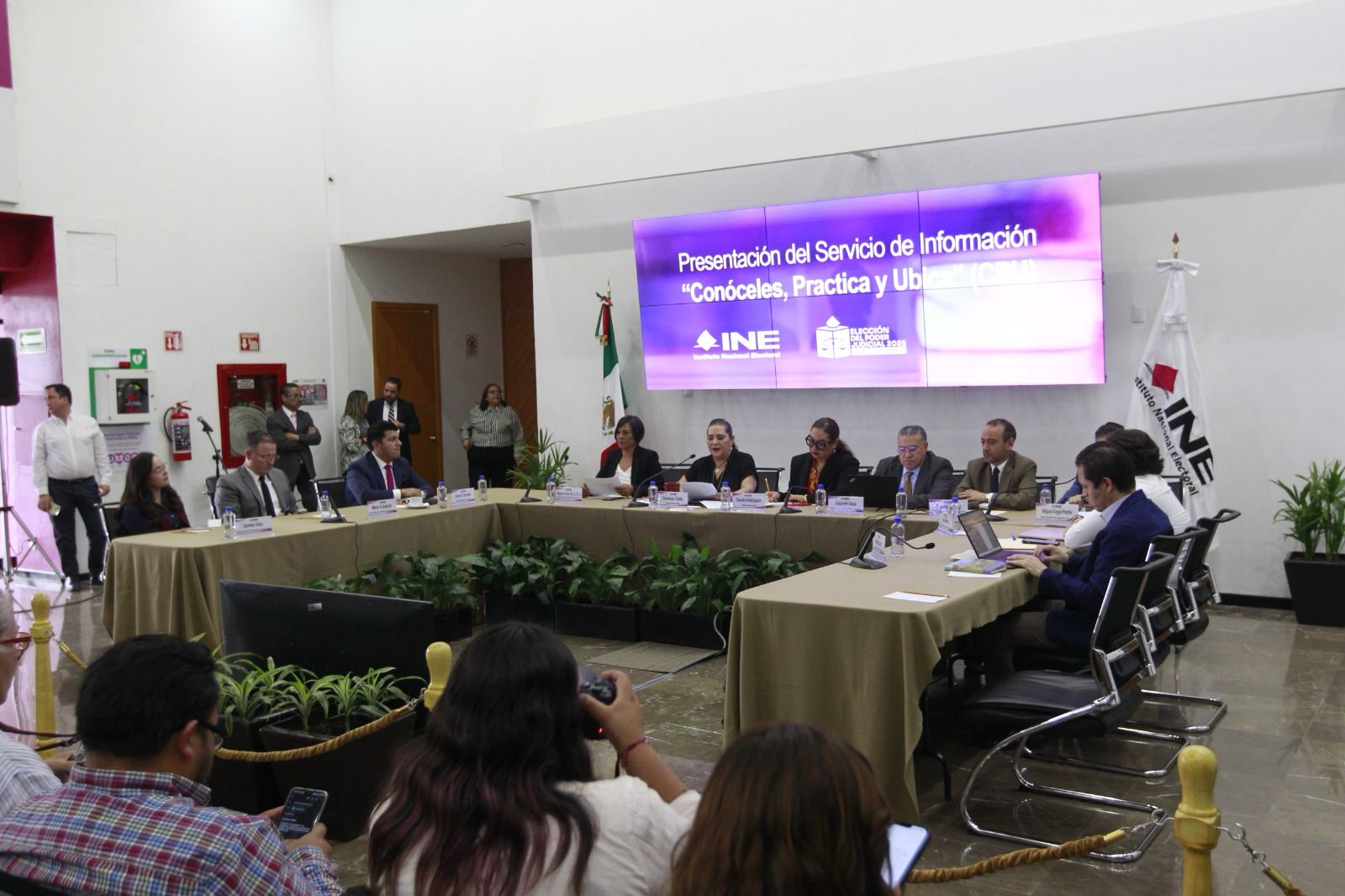 Igualmente, el Titular del Órgano Interno de Control (OIC) del INE, Víctor Hugo Carvente Contreras; el Titular de la Unidad de Transparencia y Protección de Datos Personales, José Luis Arévalo Romo y la Encargada de Despacho de la Coordinación Nacional de Comunicación Social, María del Carmen Urías Palma.