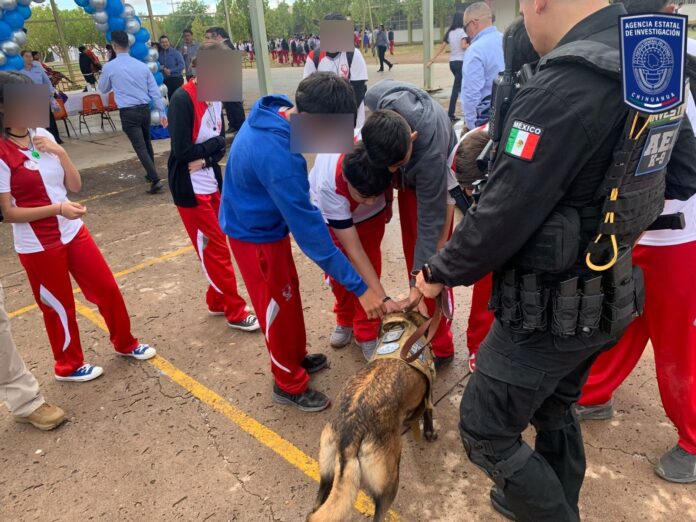 Como parte de los trabajos para combatir y prevenir la comisión de delitos desde todos los frentes, así como evitar situaciones de riesgo a niños, niñas y adolescentes, el Grupo de Orientación Escolar Chihuahuense (GOECHI), de la Agencia Estatal de Investigación, se presentó en el arranque del ciclo escolar 2025-2026, en el municipio de Nuevo Casas Grandes.