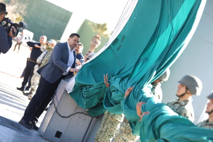 Acompañado del Coronel de Infantería José Juan Manuel Montiel Rangel, en representación de la Guarnición Militar y el inspector Víctor Manuel Pérez, coordinador del 31 Batallón de la Guardia Nacional, el alcalde destacó que el aniversario de la Constitución se celebra justo cuando el país atraviesa por varias cosas.
