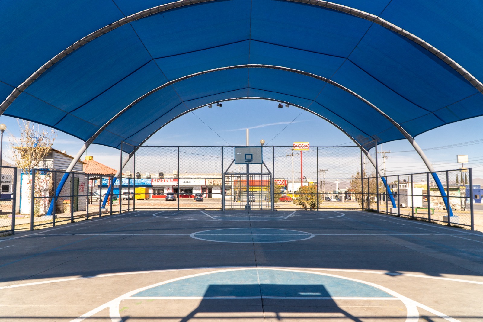 Con una inversión de 4 millones 91 mil 401 pesos proveniente del Fondo del Desarrollo Socioeconómico Municipal (FODESM) se realizó esta obra que permitirá a quienes visitan estos seis espacios a protegerse del sol y los cambios del clima, y de esta manera permitir las actividades al aire libre de manera más cómoda. Además, se aplicó de pintura en la estructura y en las líneas de juego de las canchas