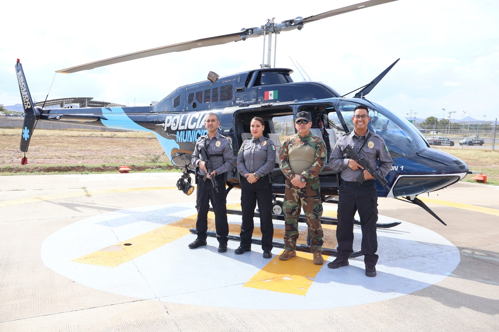 La unidad está integrada por cuatro operadores de vuelo y dos pilotos, quienes trabajan de manera coordinada con la tecnología de la Plataforma Escudo Chihuahua, recibiendo en tiempo real información de cámaras y reportes para ubicar objetivos y apoyar operativos en tierra.