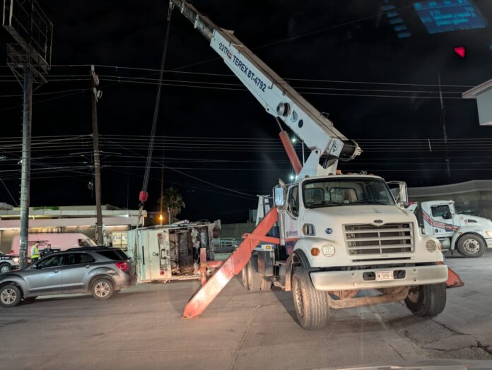Volcadura de camión recolector en avenida Tecnológico fue durante traslado en grúa